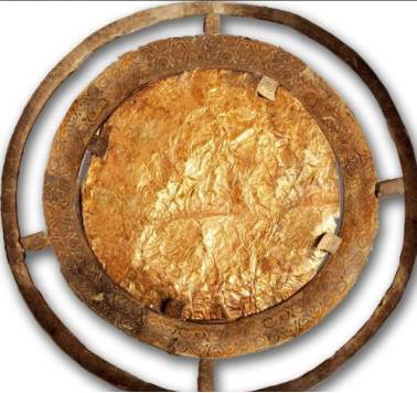 一件直徑約30 厘米的圓形金器,露出了廬山真面目。