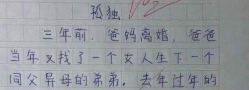 一名小學生寫了一篇題為《孤獨》的作文,獲得了滿分。 全文沒有一個「孤獨」二字,但字里行間卻飽含淚水。