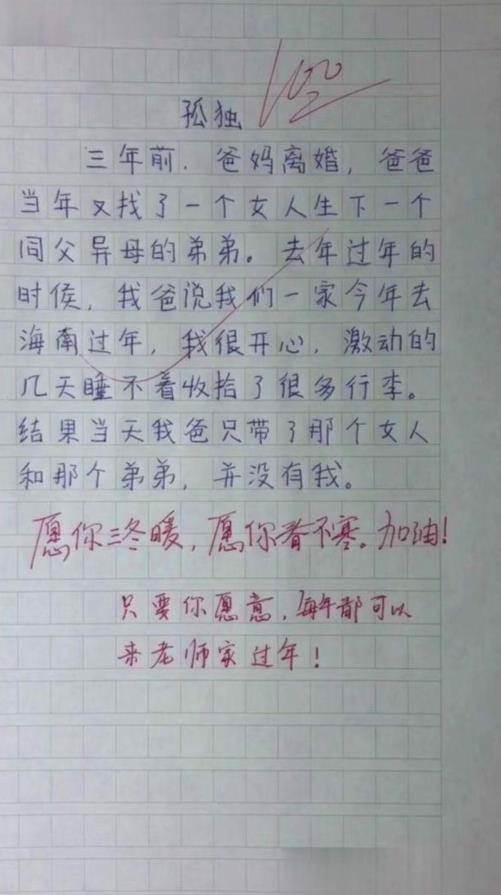 小學生《孤獨》作文獲滿分,字里行間都是淚,網友:太不公平了