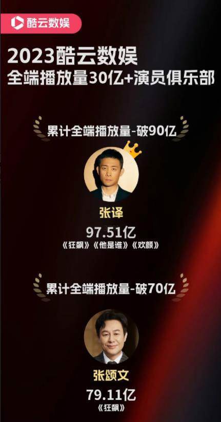官方發出的這份榜單統計的事全端播放量30億+的演員,我們可以看到排在第一的是張譯,他憑借《狂飆》《他是誰》《歡顏》累積播放量已經突破90億,這絕對是當之無愧非常亮眼的成績。