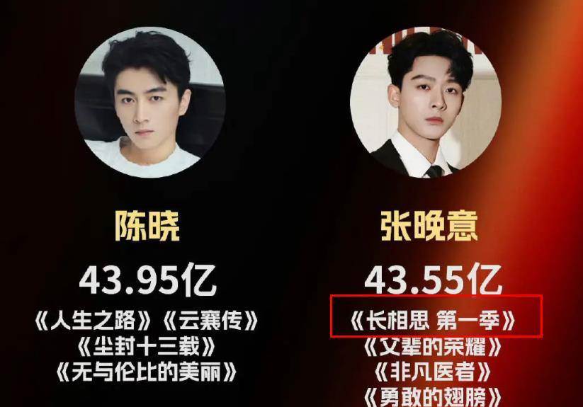 《長相思》第一季共有四位主演,但進入榜單的只有張晚意,他的總體播放量為43.55億,能累積到這樣的播放量,是通過四部電視劇,分別是《長相思》第一季、《父輩的榮耀》《非凡醫者》《勇敢的翅膀》,從張晚意的成績上看,雖然長相思的播放量非常高,但僅僅憑借一部長相思,確實無法進入這個榜單,因為進入榜單的演員,除了張頌文外,都有兩部或者三部作品與觀眾見面。