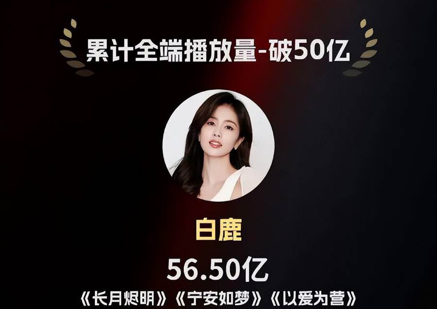 從整體排名上看,2023年作品播放量最高的女演員是「白鹿」,她排在第三名,是唯一一個播放量破50億的演員,2023年她有三部作品與大家見面,分別是《長月燼明》《寧安如夢》《以愛為營》,雖然這三部劇都沒有成為爆劇,但整體播放量卻達到56.