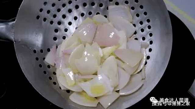 5.接著再繼續把下一鍋排骨全部炸好后,再把土豆倒下去,炸到表皮金黃后撈出。6.干鍋我們一般都用酒精爐加熱,所以洋蔥直接墊底就可以了。如果家里沒有干鍋爐的話,可以先把油溫升到七成熱,然后快速倒入洋蔥,過油6秒就撈出。過油后的洋蔥口感是要比生炒好吃的。