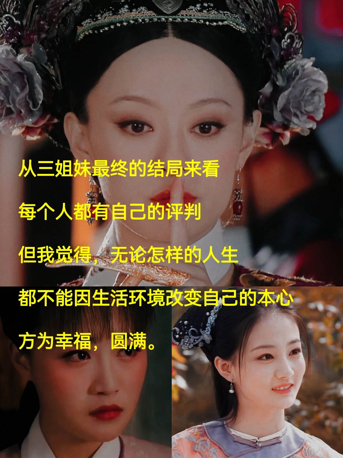 從三姐妹最終的結局來看每個人都有自己的評判但我覺得,無論怎樣的人生都不能因生活環境改變自己的本心方為幸福,圓滿。