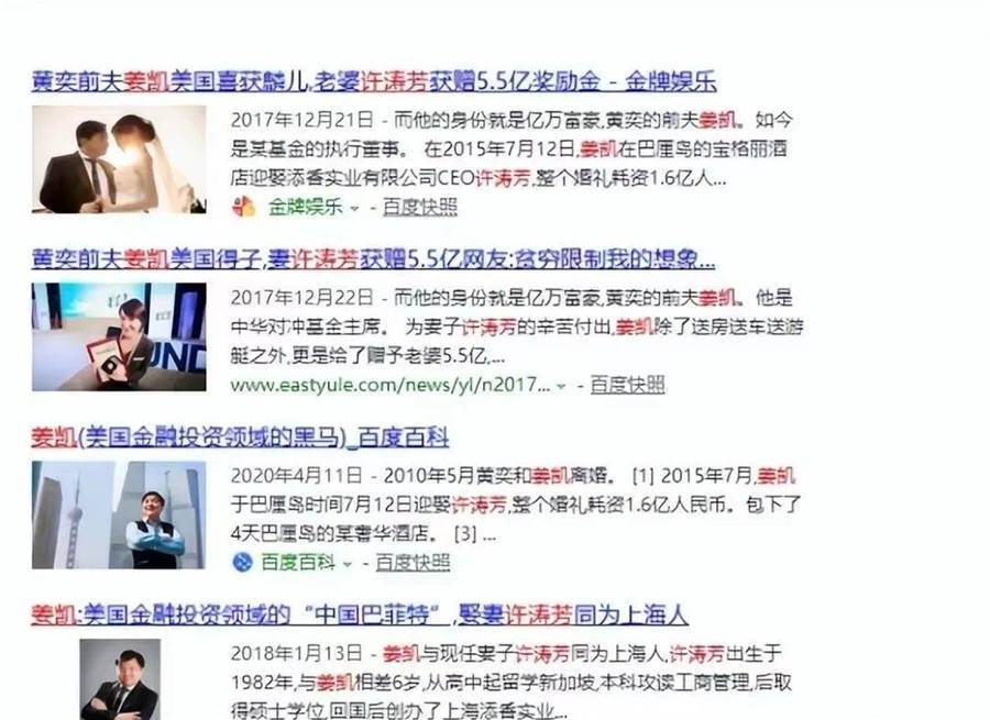 許濤芳為其誕下一子后,姜凱更是贈妻5.5億,與昔日失婚的黃奕相比,他日子蒸蒸日上,財富東山再起,重返華爾街大佬圈。