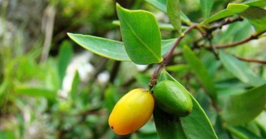 了哥王是一種分枝小灌木植物,植株低矮,高度約為40厘米左右。單葉對生,呈倒卵形,顏色翠綠。花開為黃綠色,剛結出的果實是綠色的,等到成熟后就會變成大紅色,看起來非常鮮艷奪目。了哥王喜歡生長在山坡、丘陵、曠野、村邊、田邊、林下等處,分布廣泛,在我國多個省份均有分布。