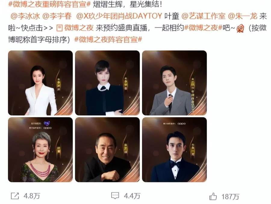 各位讀者,看到微博之夜官宣的明星陣容后,你們期待今年的微博之夜嗎?你認為今年哪位明星會獲得King,哪位明星又會獲得Queen呢?讓我們拭目以待吧!