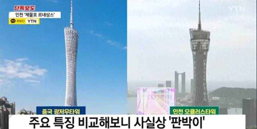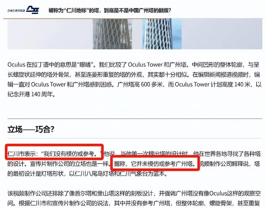 廣州塔在2010年修建完畢,施工難度很大,集結了多方的努力和智慧,如今赤裸裸地被盜用,實在讓人無法理解。韓國官方后續回復,承認使用了「重慶觀音橋3788」大屏上的廣告,但事先已經拿下了版權,但官方三番兩次辯解否認抄襲廣州塔,表示只是設計方案很像,但成品一定會比廣州塔更精美宏大。