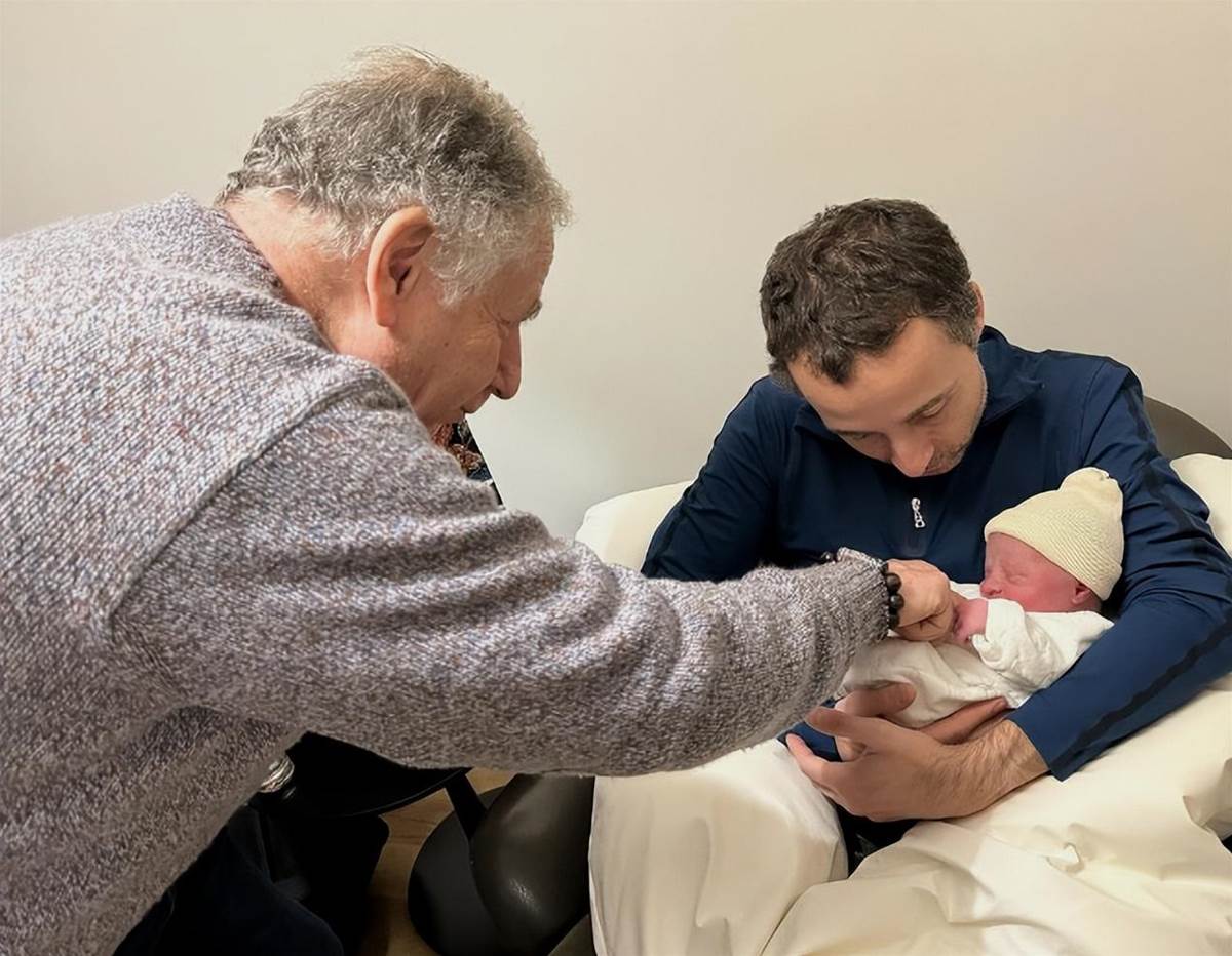 画面中,孙子马克西姆安详地睡在儿媳达丽娜的怀中,而杨紫琼则与让·托德、尼古拉斯围坐在床边,洋溢着家庭的温馨。