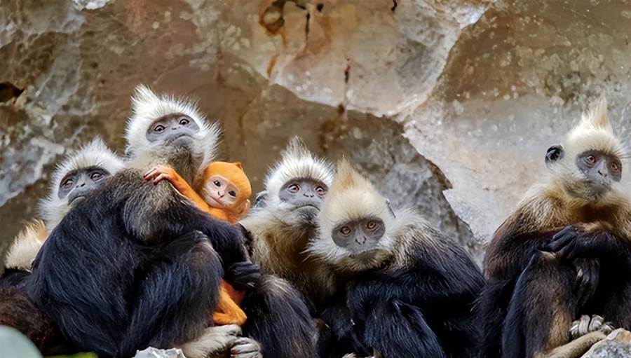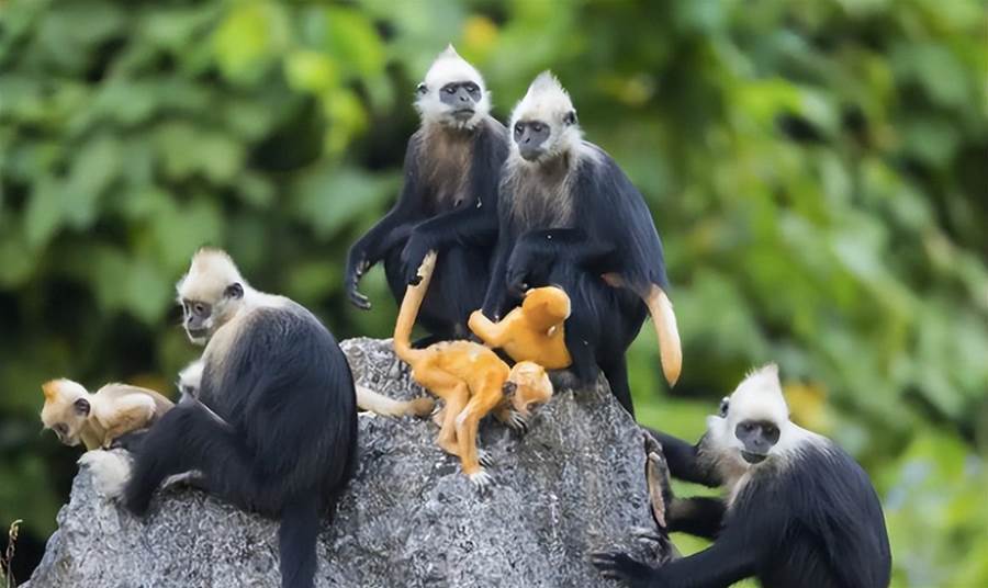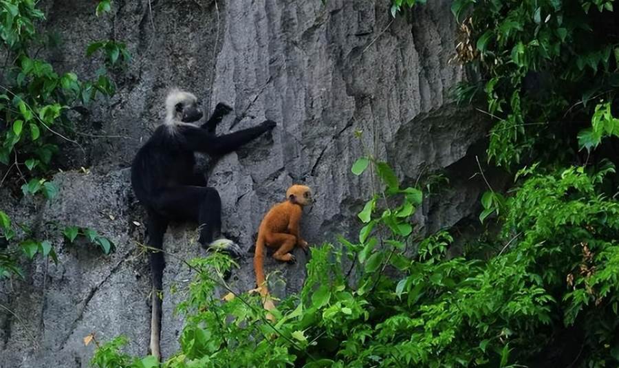 由于地理的原因,廣西地區多山,重巒疊嶂,茂林里生長著許多野生動物。喀斯特地貌的條件,使得廣西一隅衍生了一批白頭黑身的猴子,它們就是白頭葉猴。