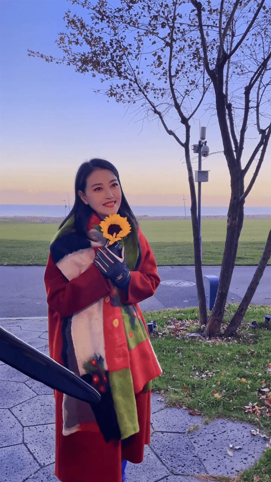 附圖中,周海媚妝容精致,秀發披肩,笑容甜美,手里還握著一朵向日葵花,看起來溫暖又明媚,令人不敢相信還這麼年輕的她就匆匆辭世。
