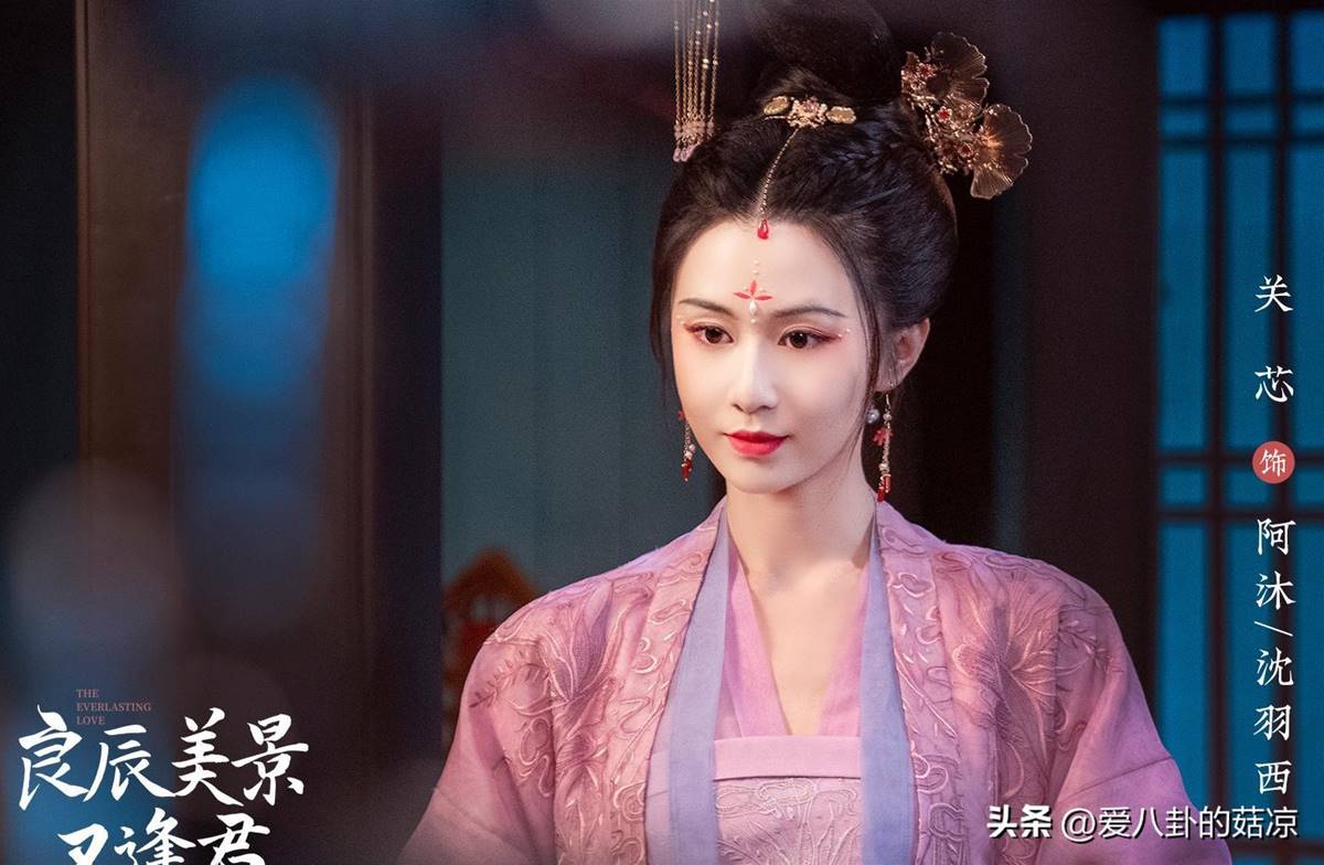 关芯饰演阿沐/沈羽西,落魄千金兼复仇少女。凭借美貌出圈的关芯,曾出演过多部影视剧,像《微微一笑很倾城》、《宸汐缘》、《醉玲珑》等等。虽然大多都是恶毒配角,但演技给人留下了深刻的印象,古装扮相更是从来没让人失望过。
