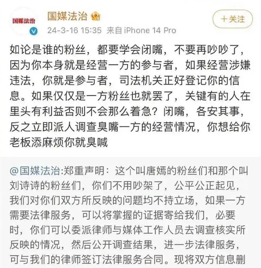 在勸導中,官方賬號強調劉詩詩和唐嫣粉絲不要吵架了,這種爭論不僅影響了粉絲之間的和諧,更對兩位明星的名譽造成了損害。