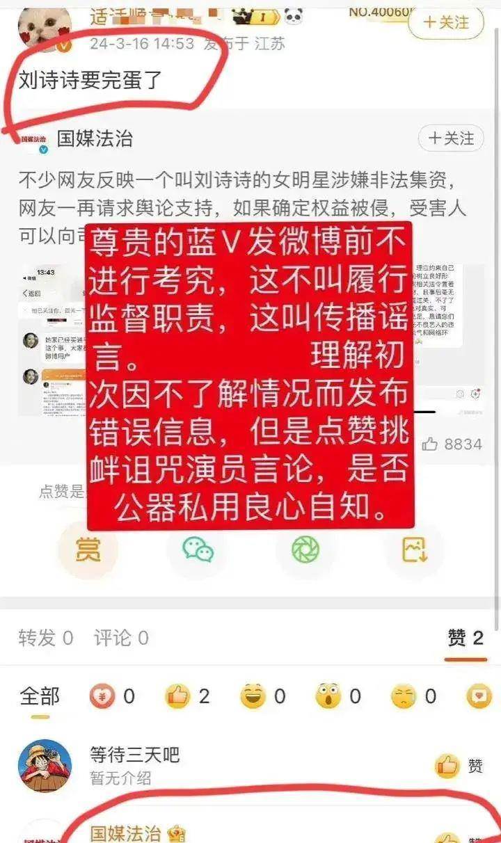 一個官方,出來勸架,卻贊劉詩詩職黑,自身還有官司的一個藍v唄,公器私用被取證后刪博,哪來的公信力?也難怪網友怒罵官方