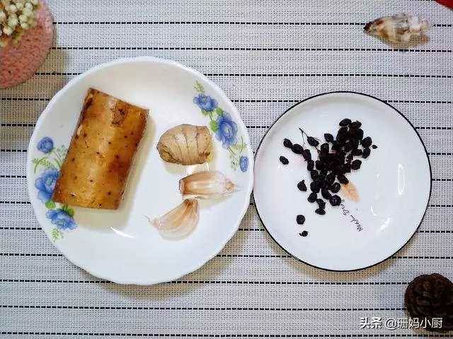 【準備材料】:前排骨1根,山藥一截,蒜頭2粒、豆豉15克,姜1塊,鹽少許、生抽1勺、蠔油1勺、白砂糖1/2勺、料酒1勺、玉米澱粉1勺、花生油1勺。