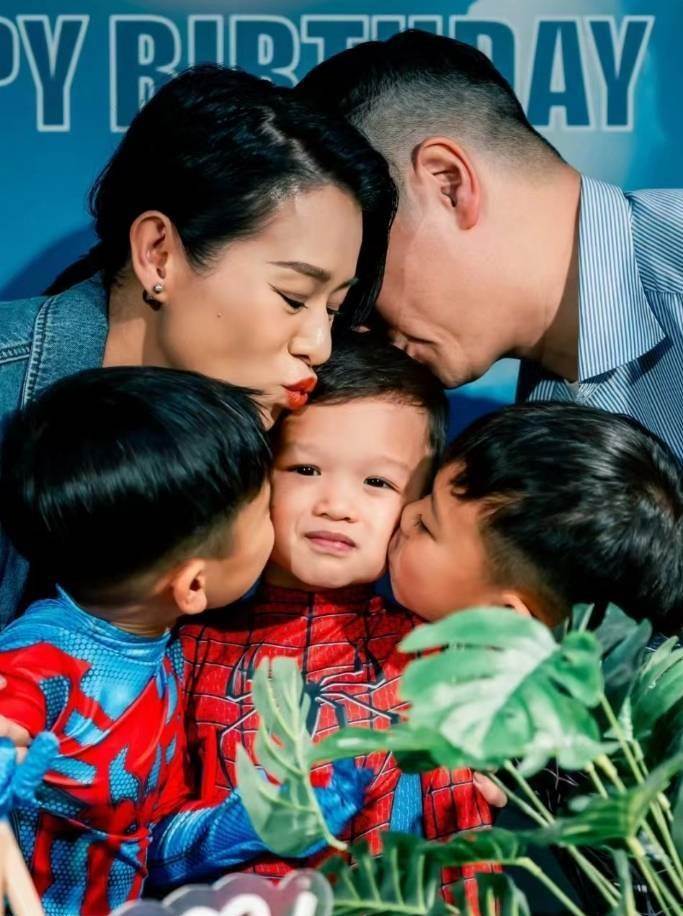 奕宏被爸爸媽媽以及兩個哥哥包圍在中間,小家伙開心到不行。奕霆和奕霖同樣如此,臉上的燦笑就沒下去過,而胡杏兒和老公李乘德就更不用多說了,兒子們開心,他們自然就開心。