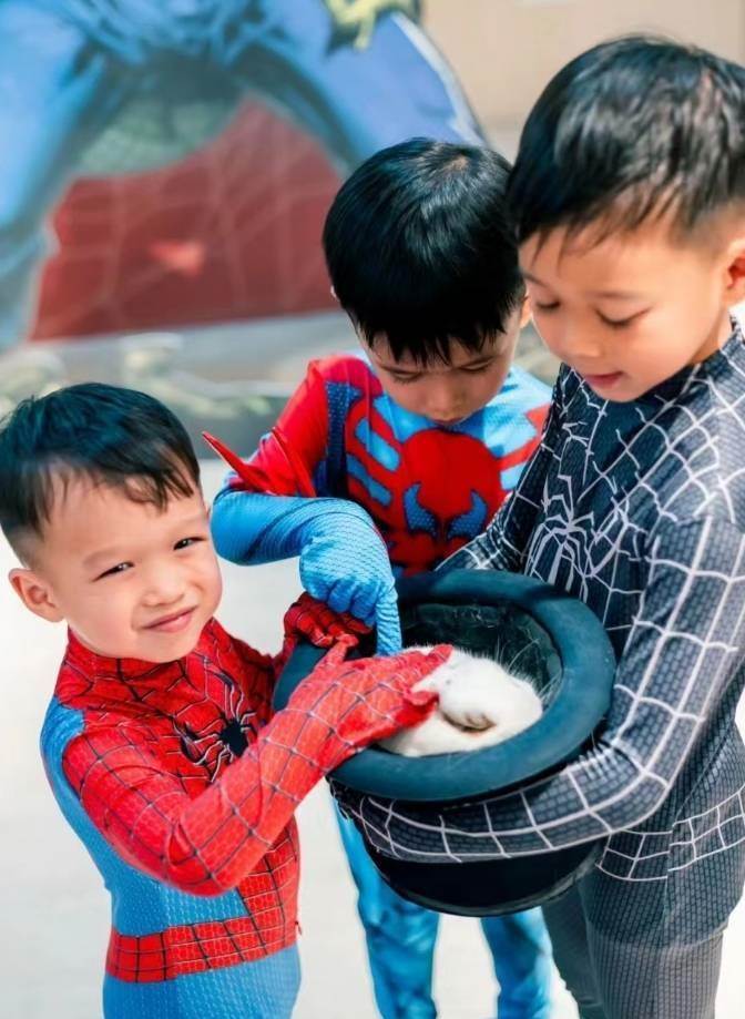 畫面一轉,咱們的大哥奕霆和二哥奕霖也出鏡啦,兄弟仨都cos成了帥氣的蜘蛛俠。