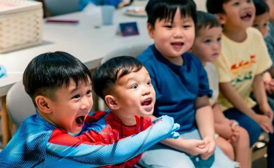 胡杏兒和李乘德今年邀請了很多人在為小兒子慶生,現場也聚集了超多的小朋友。在看到精彩的表演時,小家伙們一個個的露出了驚喜的表情,特別是小奕宏,表情也太生動可愛了點。