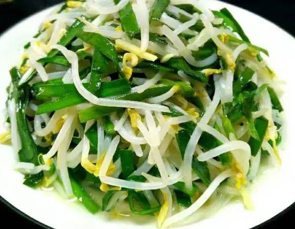 1,綠豆芽摘洗干凈,韭菜洗凈切成小段,姜切絲。