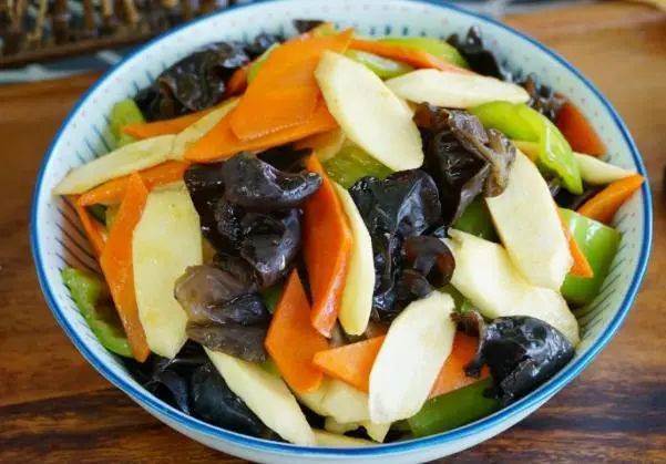 食材:山藥1根、木耳1把、青椒1個、胡蘿卜1根