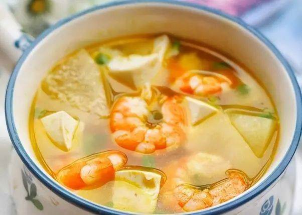1.蝦仁去掉蝦線,沖洗后加料酒、鹽抓拌幾下,腌制十分鐘。冬瓜去皮洗凈,切成稍微厚一點的片。嫩豆腐沖洗后切小塊。再切點姜絲、蒜末、蔥花待用。