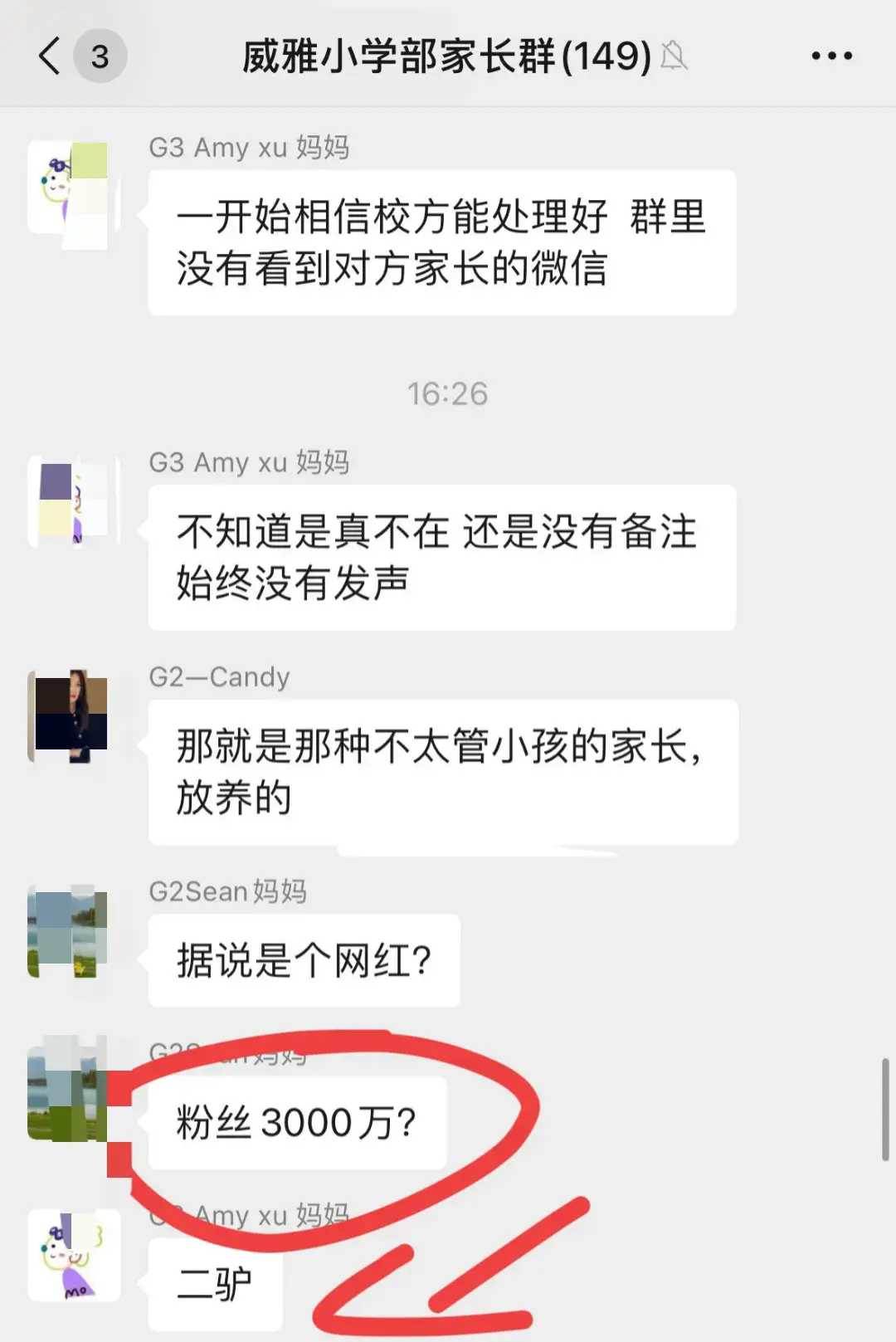 看到家長們的聊天內容,目前教育局確實在徹查此事,而且因為是明星的孩子,所以輿論鬧的很大。