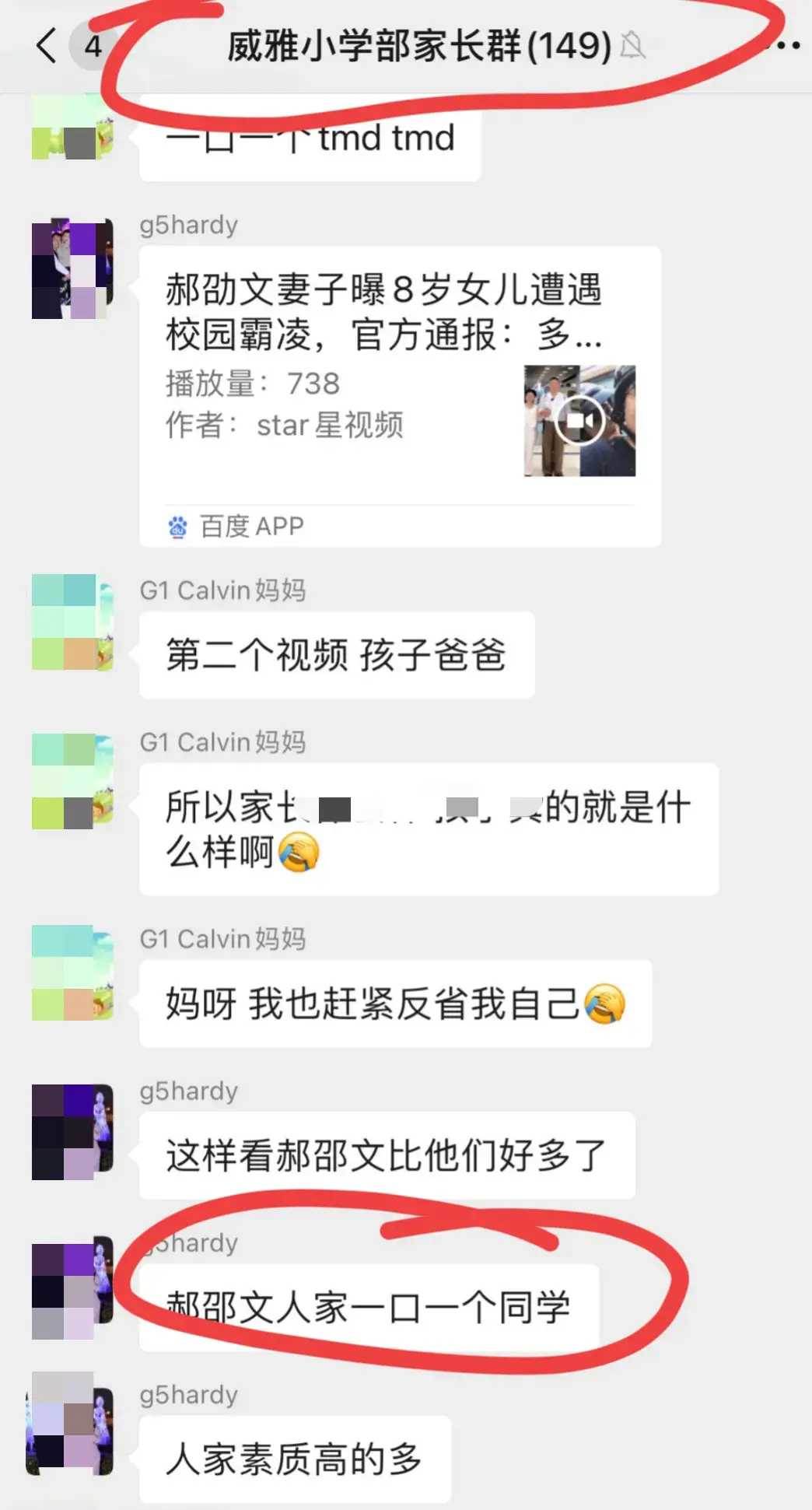 隨后,網上突然曝出郝邵文女兒學校家長群的聊天記錄和圖片,看的讓人觸目驚心,據說霸凌郝邵文女兒的學生疑似網紅二驢女兒。