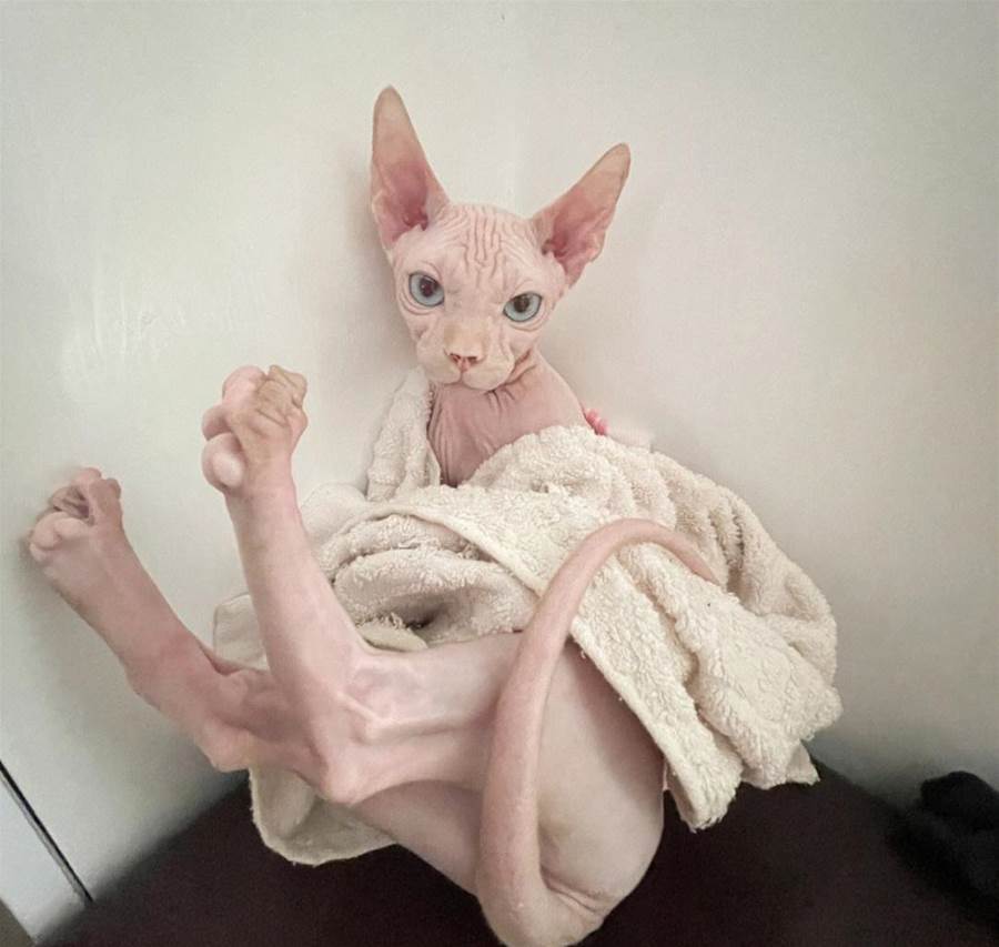 無毛貓還非常嬌貴,飼養起來很麻煩,比如它的皮膚還需要專門護膚,出門還要涂防曬,過得比人還要精致,所以說養無毛貓的都是有錢人。