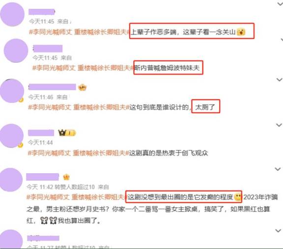 劇情拖沓得讓觀眾感到視覺疲勞,戲外的紛爭更加精彩,把人搞得心煩意亂。好不容易撐到最后,結果卻是一手惡心人的結局。真是離譜媽媽給離譜開門,離譜到家!