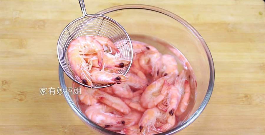 第五步:大蝦煮好后,我們還需要準備一碗涼水,將煮好的大蝦直接倒入涼水中過涼。要是家里有冰塊的,也可以放入一點冰塊在水中。這一步的目的就是可以使蝦肉的口感更加緊致Q彈,它利用的就是熱脹冷縮的原理,將熱的蝦放入冰水中,這樣就會使蝦肉快速的縮緊,使它的口感更加好吃。