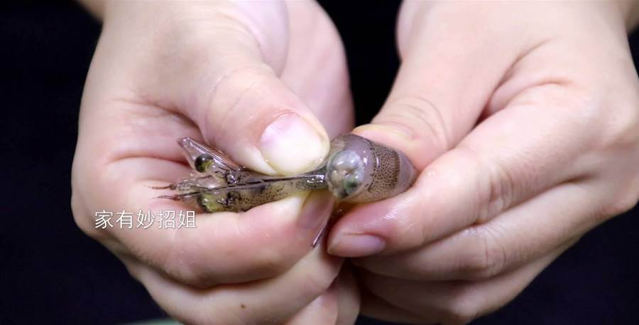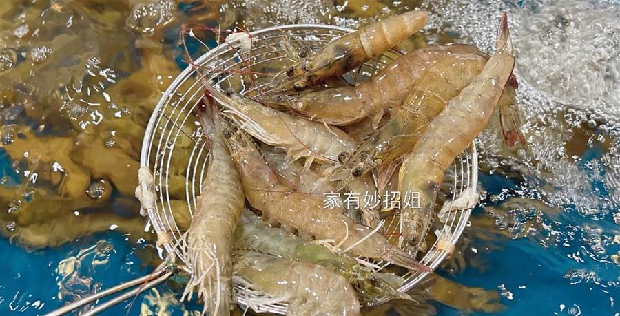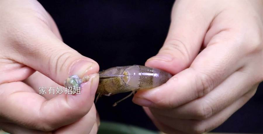 接著,我們用抓住蝦頭的手用力擠壓一下,這樣蝦頭里面的蝦包就會被擠了出來。接下來,我們抓住蝦包慢慢的拽,連接蝦包的蝦線也會被一并給拽出來,一只大蝦也就處理好了,既快速又干凈。將所有的大蝦都這樣處理過后,我們再用清水清洗幾遍,大蝦就清潔好,可以拿去烹飪了。