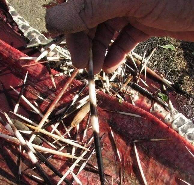 豪豬的尸體還很完整,甚至還沒開始消化蟒蛇就掛掉了。