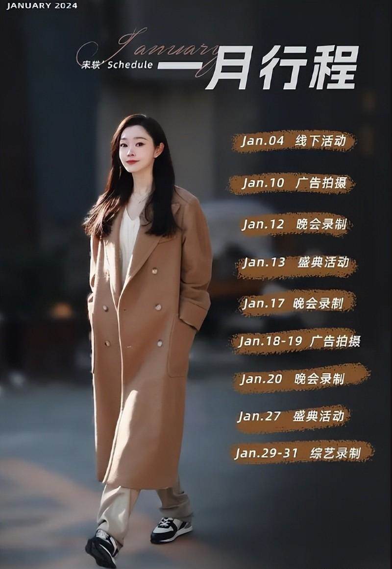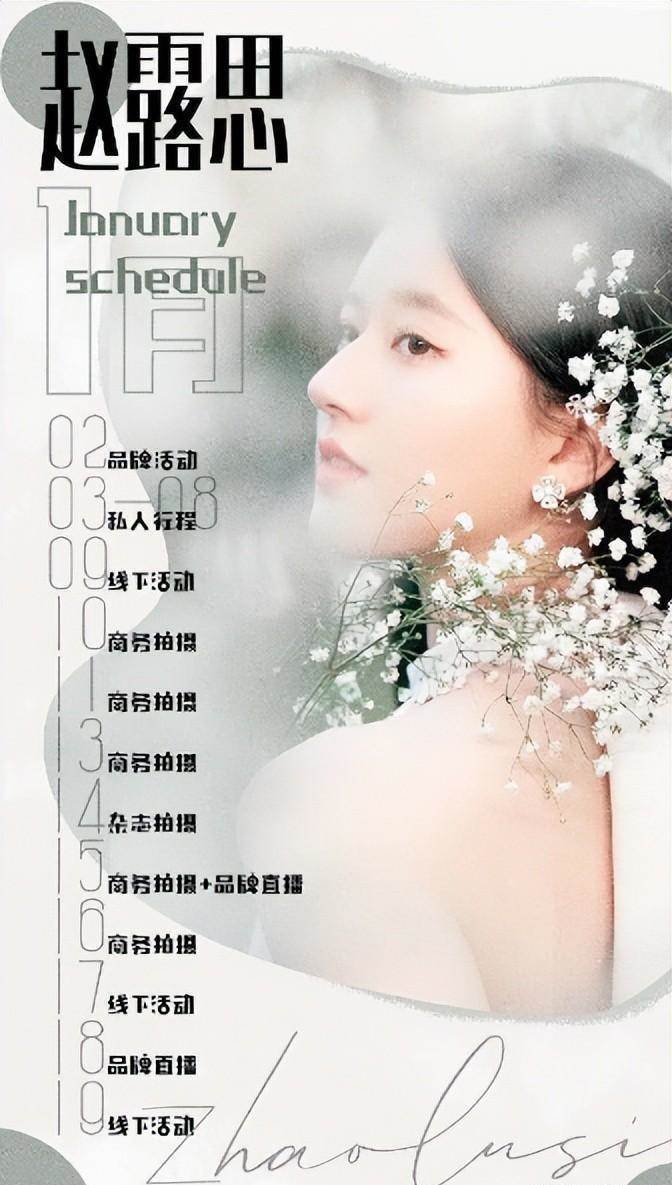 從行程看,月初的唐嫣甚至連后起之秀都比不過。比如95花趙露思,月初統計的一月行程已有9個,不排除后續還會增加。