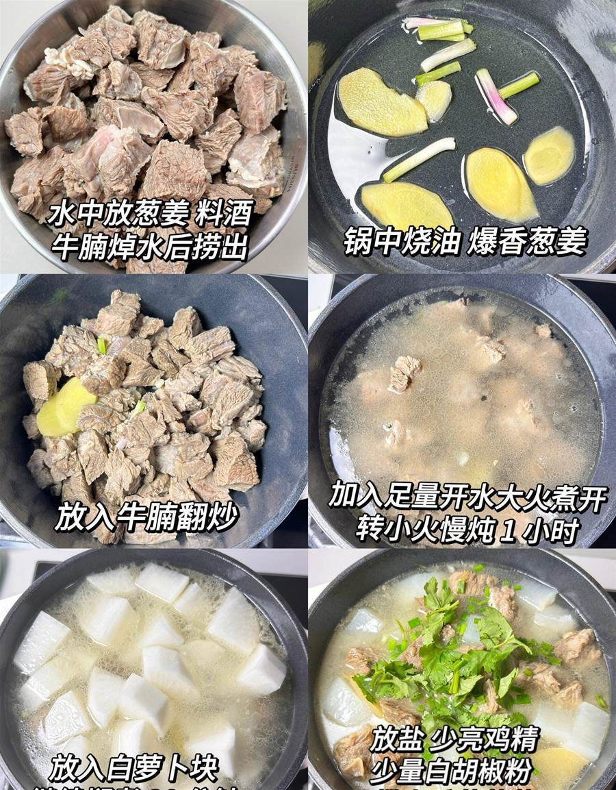 記得小時候,每逢周末,家里總會燉上這樣一鍋蘿卜牛腩湯。媽媽總是早早地準備食材,新鮮的牛腩、水靈的蘿卜,還有必備的大蔥和生姜。