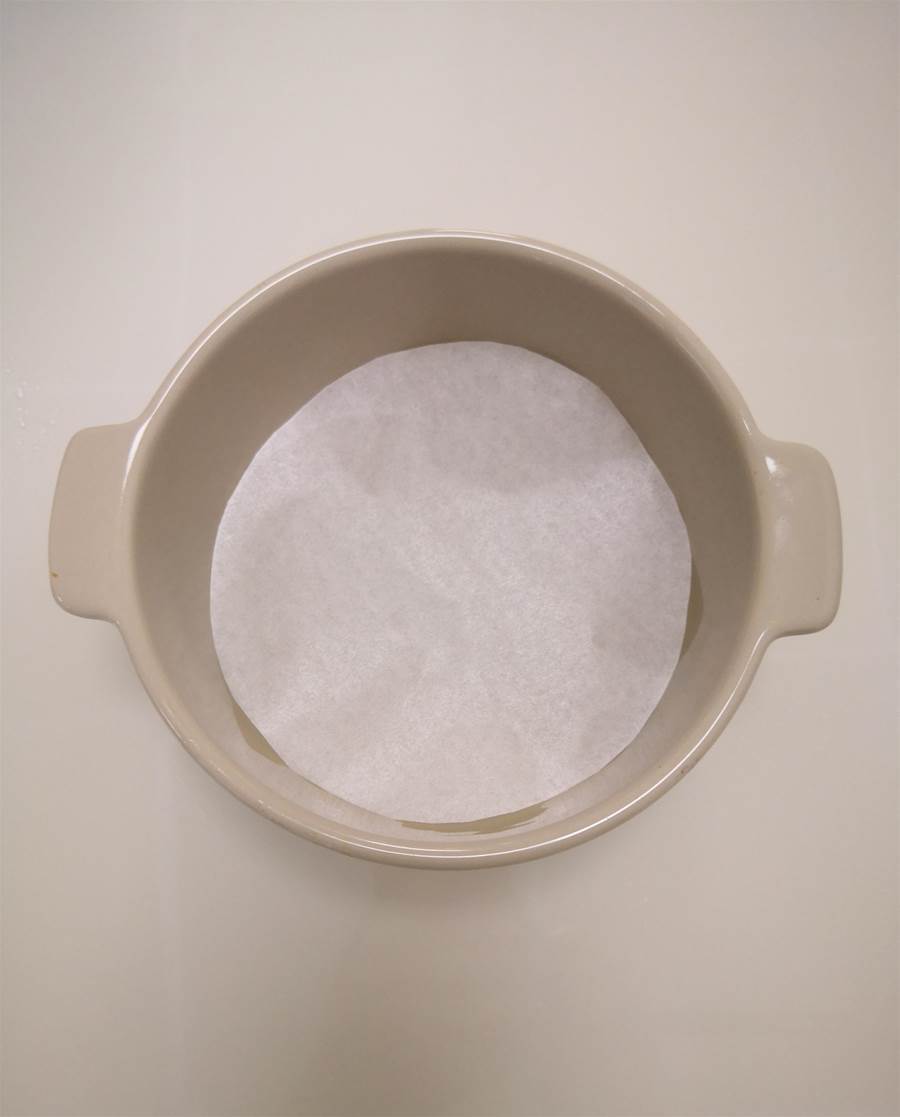 準備一個烤碗,底部墊上油紙。