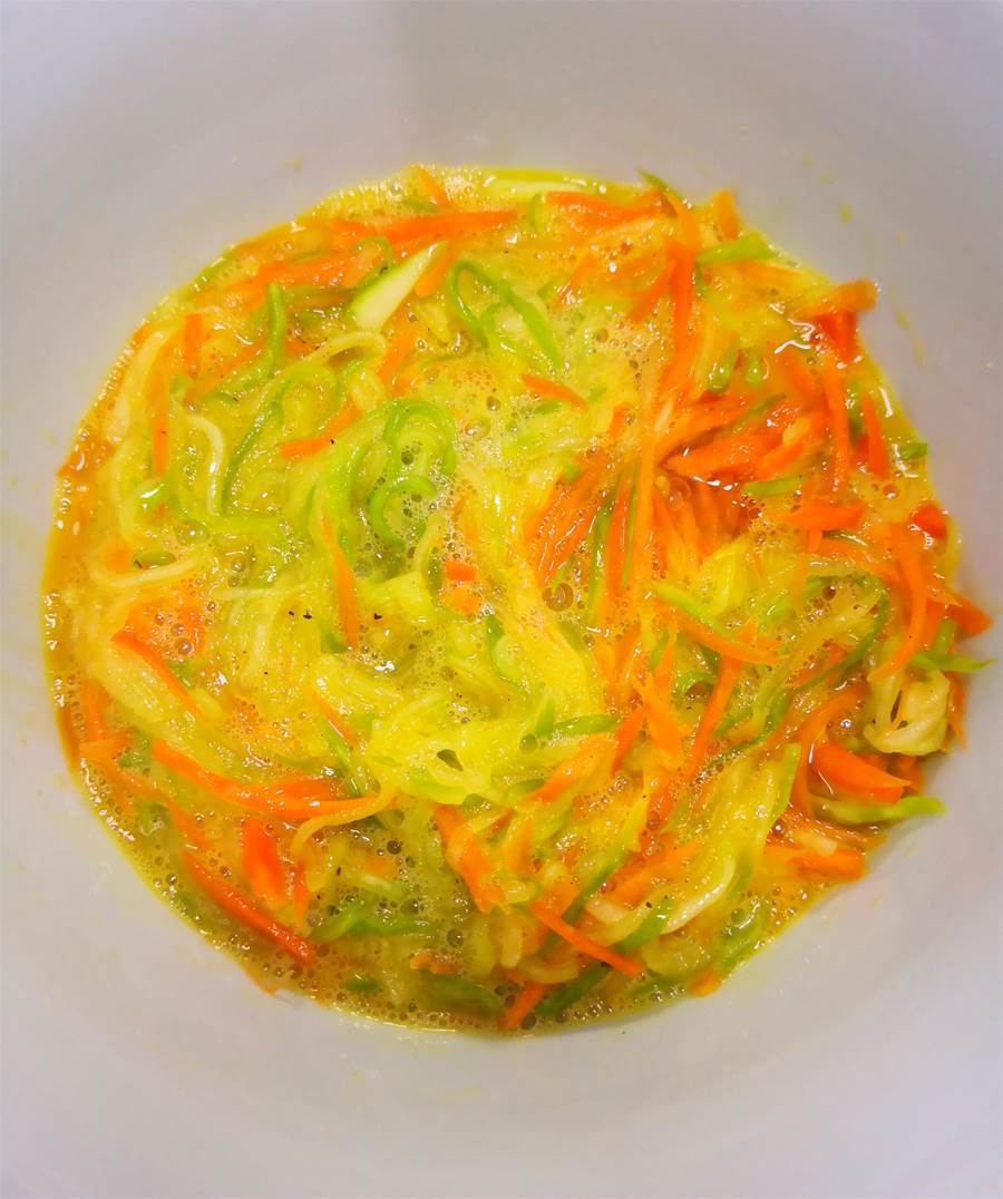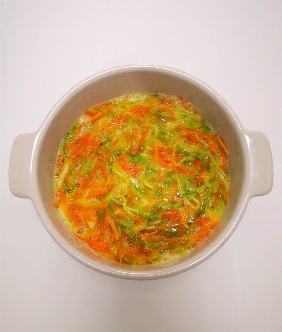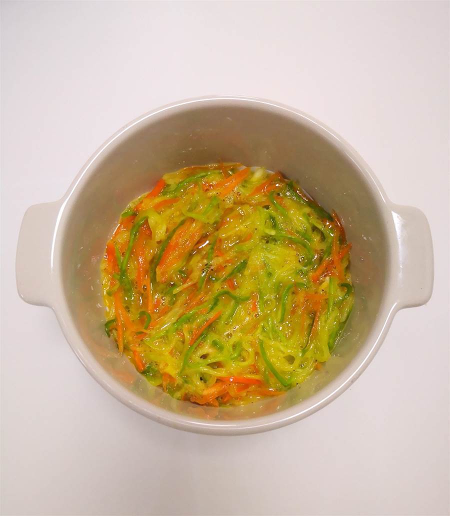 1.西葫蘆中間帶籽的部分不要,口感不好;西葫蘆和胡蘿卜加鹽靜置后,一定要用力攥干,這樣烤后就不會出水,成品不濕噠噠的,好脫模不松散,完整好看又好吃。