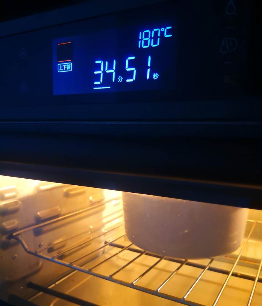 烤箱提前預熱,上下火,放中層,180度烤35分鐘,時間和溫度要根據自家烤箱的火候大小稍作調整。