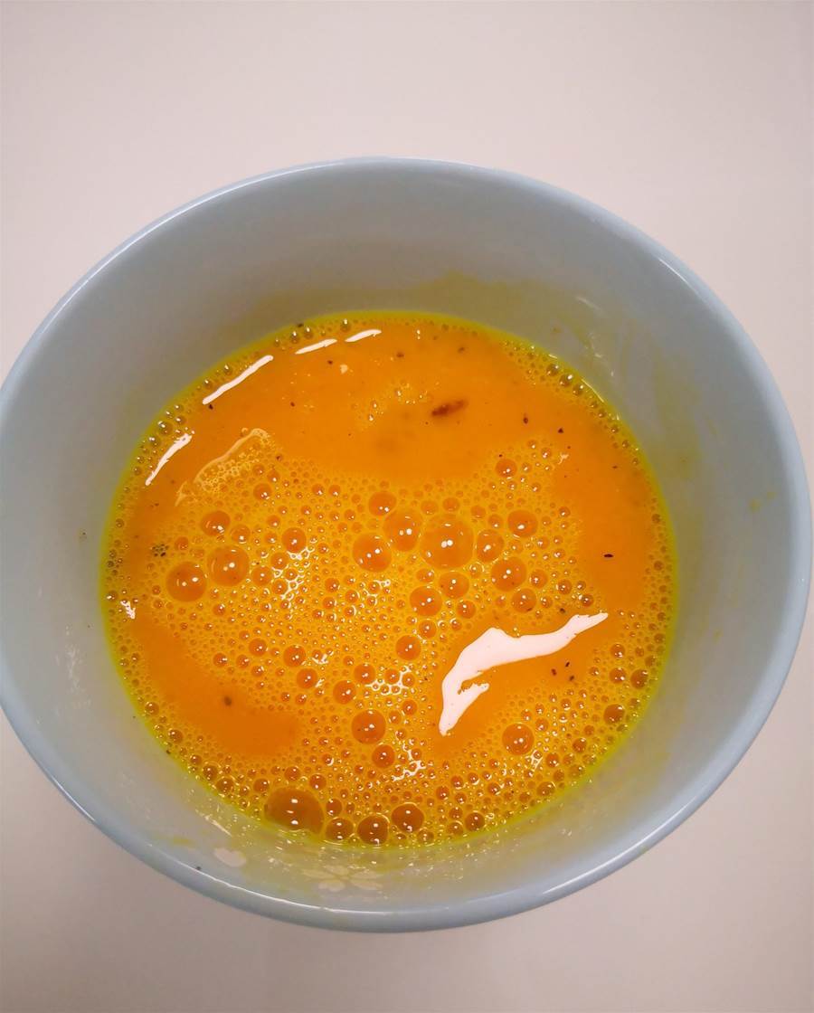 2.雞蛋液里加點黑胡椒海鹽不僅可以增加底味,還能減輕蛋腥味;也可以把黑胡椒海鹽換成普通食鹽和白醋或者檸檬汁都可以,白醋和檸檬汁都也能去除蛋腥味。