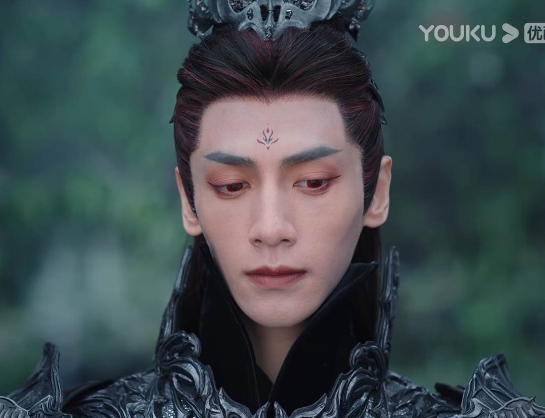 偏偏,羅云熙在劇里的妝還特別濃。一開始頂著一張瘦削的臉搭配超級大濃妝,演統治四洲三界的魔神,但看起來僅僅像一個瘦弱但愛化濃妝的反派而已。