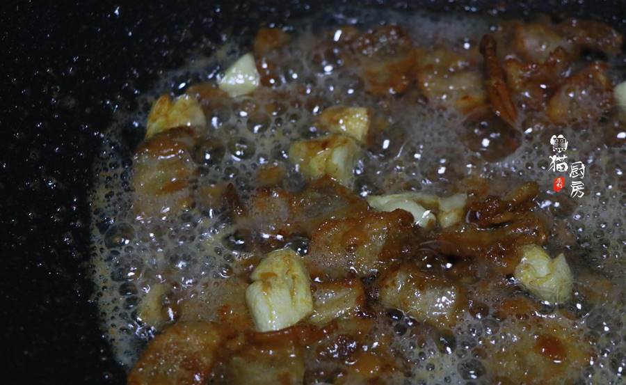 9.加入準備好的豆醬,繼續煸出豆醬的咸香味。