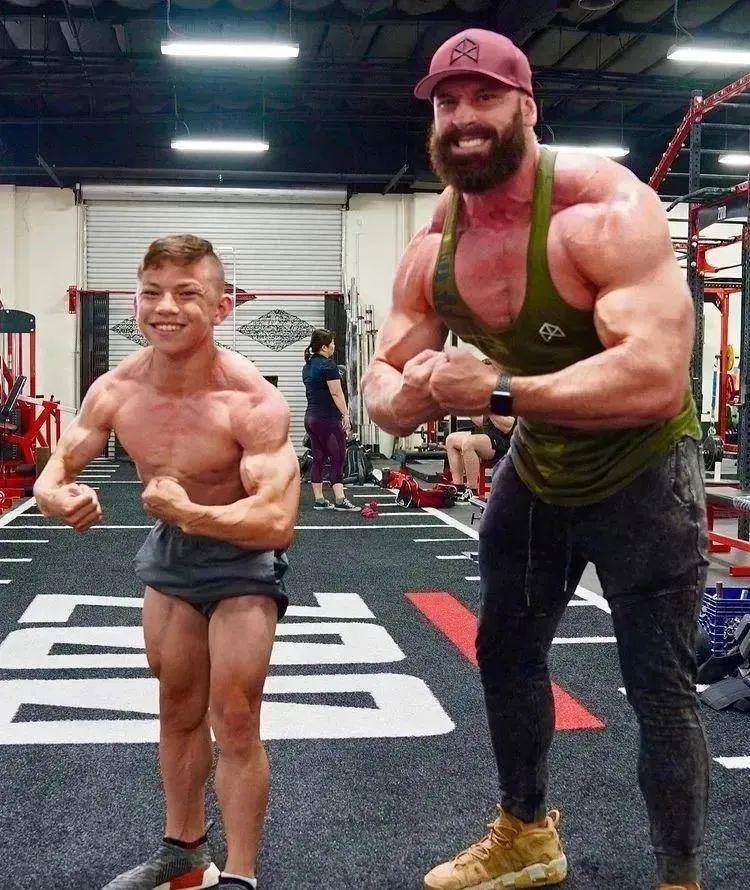 而他如愿跟很多健身大佬進行合照,讓人感覺這個小孩前途無量。