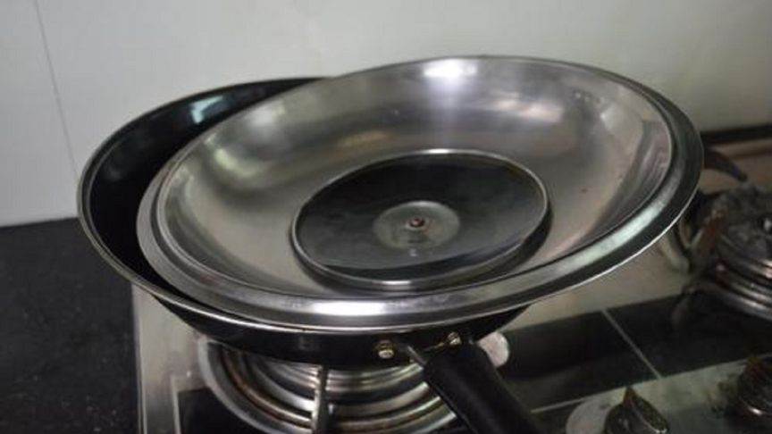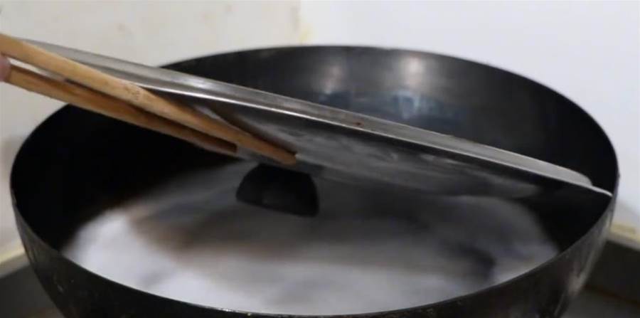 三分鐘的時間到了,這時候,我們把這個鍋蓋,反過來。注意不要燙傷,之后,再給他燒煮三分鐘。