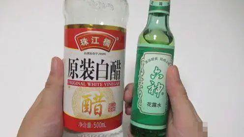 將白醋和花露水按照1:1的比例混合。