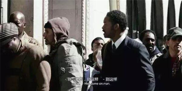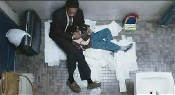 這不由得讓人想起,《當幸福來敲門》中,爸爸帶著兒子睡廁所,到教堂門前排隊住宿的場景。