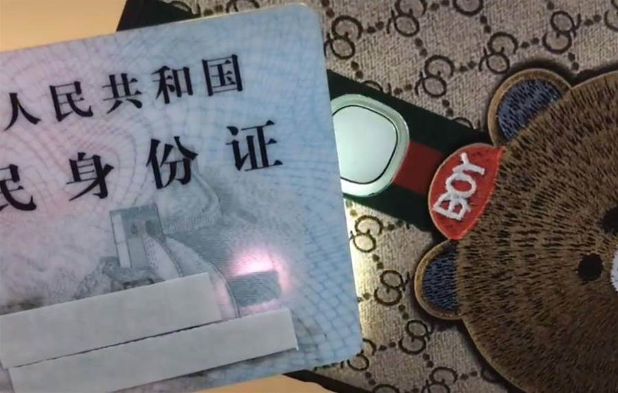最后打開手機的手電筒,將身份證放在手機的手電筒上,把燈光關閉,這里就可以發現一個小芯片,這個小芯片記錄著我們所有的信息。而假的身份證是沒有芯片,放在電腦上也識別不了的。