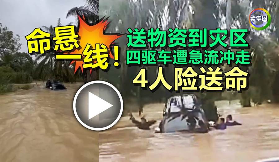 (居鑾11日訊)(JAKOA)4名職員共乘的四輪驅動車輛,在水災中連人帶車被沖走,差點溺水身亡。
