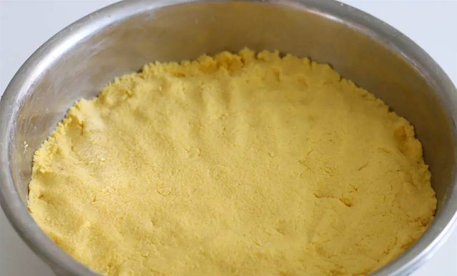 這里煮紅棗時,可以多煮一會兒,這樣,紅棗中的甜味兒會進入到清水中,用紅棗水和面,玉米面也是棗子的甜味兒。再一個,這里沒寫水的用量,把玉米面全部淋濕呈現面絮狀即可。