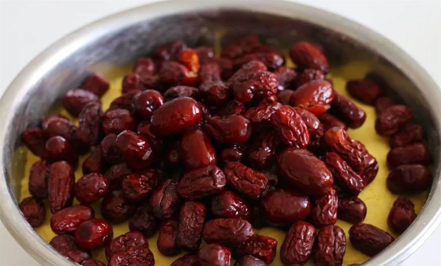 【食材】:玉米面500克、紅棗500克或更多、酵母5克。